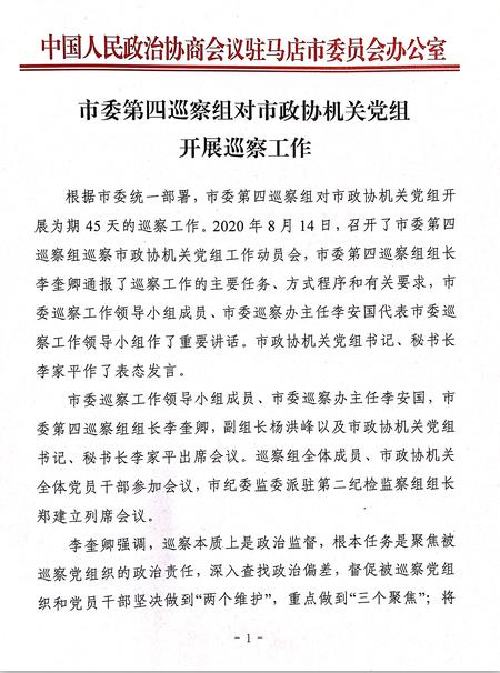 政协第四届驻马店市委员会常务委员会第三十次会议
