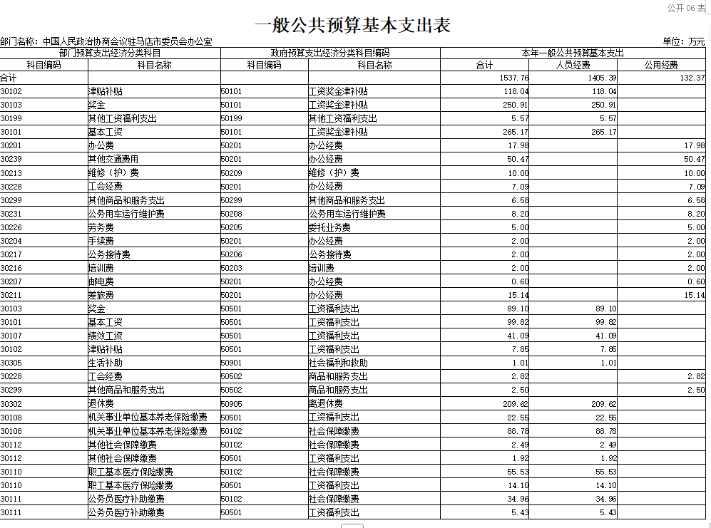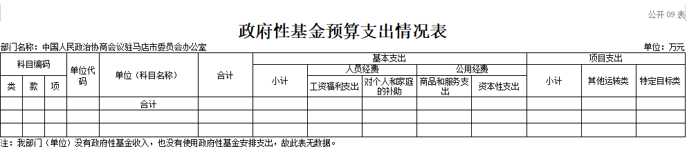中国人民政治协商会议驻马店市委员会办公室2026年度部门预算表