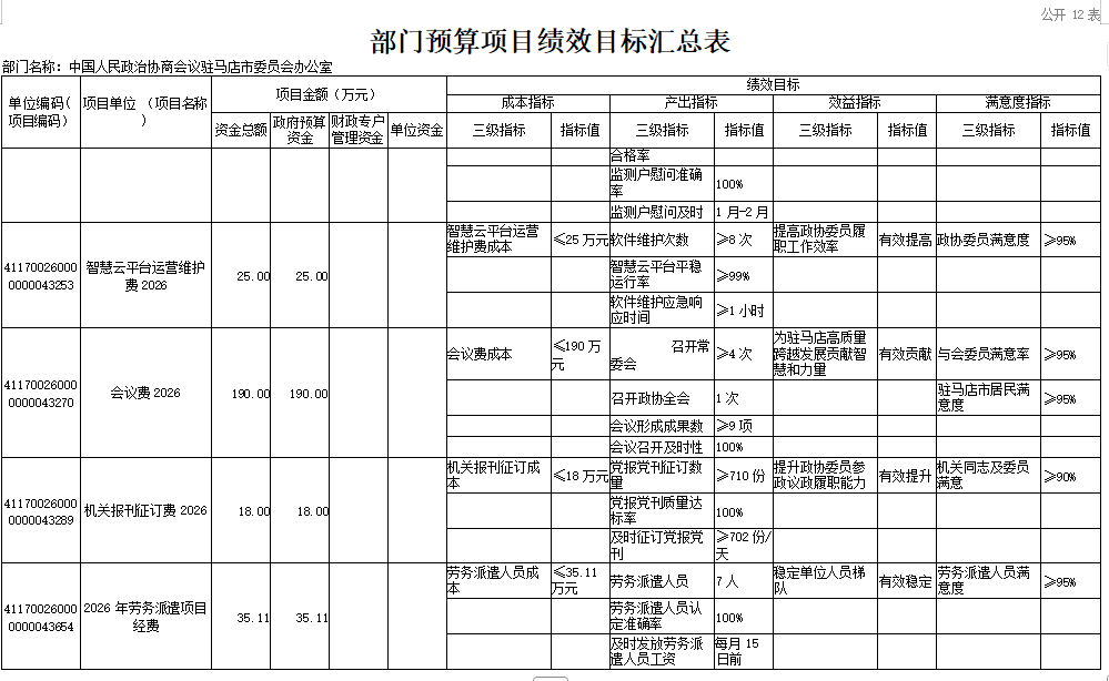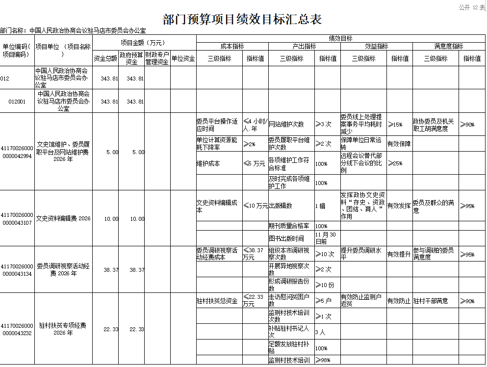 附件:中国人民政治协商会议驻马店市委员会办公室2026年度部门预算表