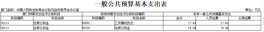 中国人民政治协商会议驻马店市委员会办公室2026年度部门预算表