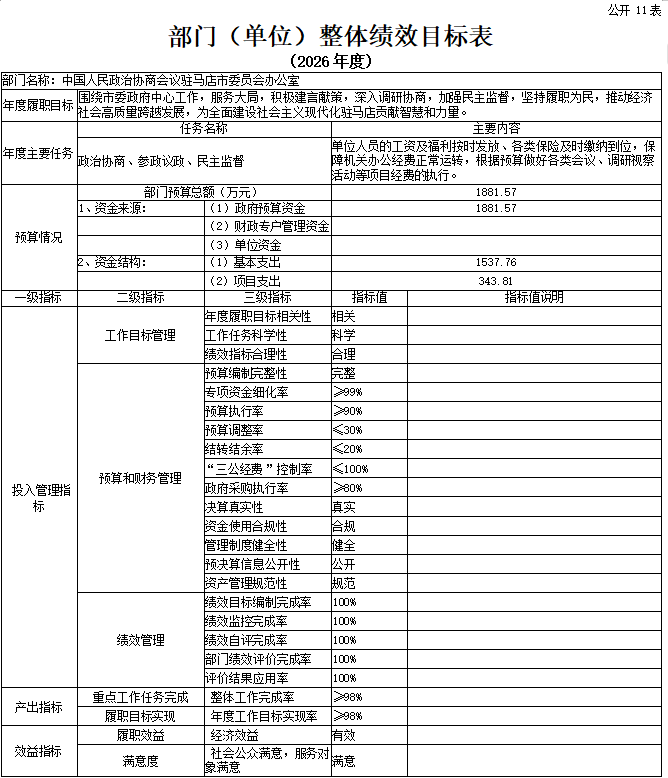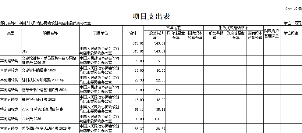附件:中国人民政治协商会议驻马店市委员会办公室2026年度部门预算表